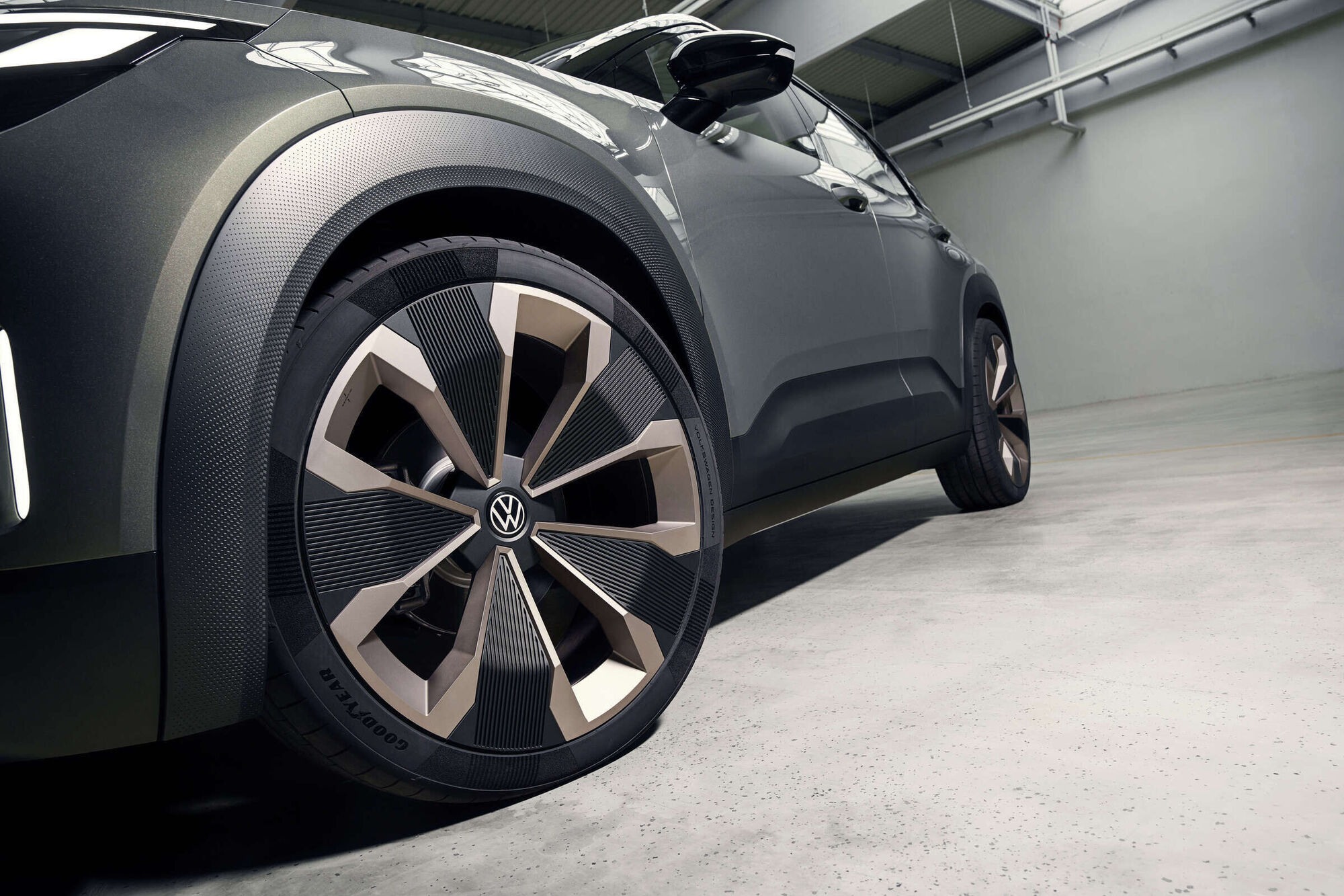 Ikonische C Säule Die solide Dachsäule steigt kraftvoll über dem Hinterrad auf und verleiht dem SUV Stabilität Sie ist eine Hommage an Golf und VW Bus